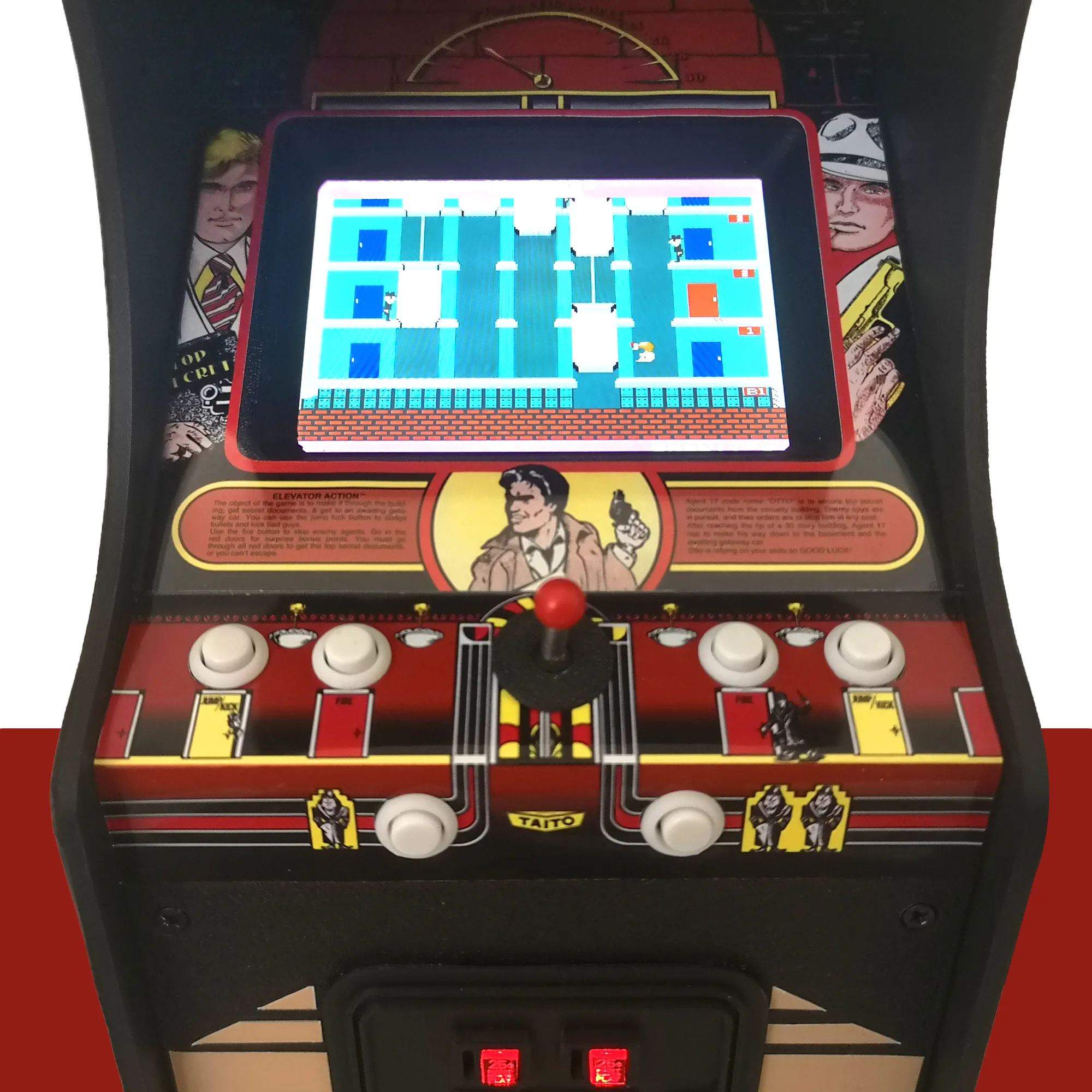 Elevator Action is a 1983 arcade game developed by Taito, blending platforming with action and strategy. Players take on the role of a secret agent infiltrating a building, riding elevators, avoiding enemies and collecting classified documents before escaping. Known for its smooth animation, tense pacing and distinctive spy theme, Elevator Action is regarded as a classic and influential title from the golden age of arcades.